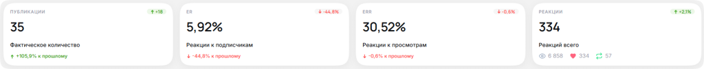 Уберите из контент-плана форматы с устойчиво низким ERR — данные по ним видны во вкладке «Контент → Форматы».
